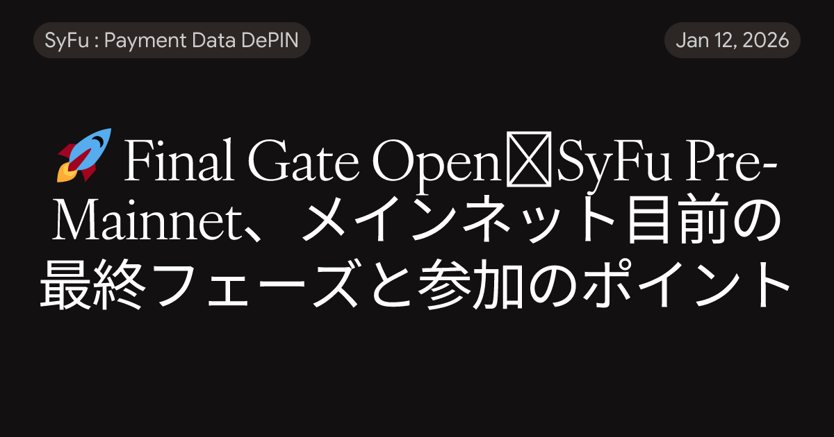 2026/01/13より、メインネット公開前最後の扉が開かれました。